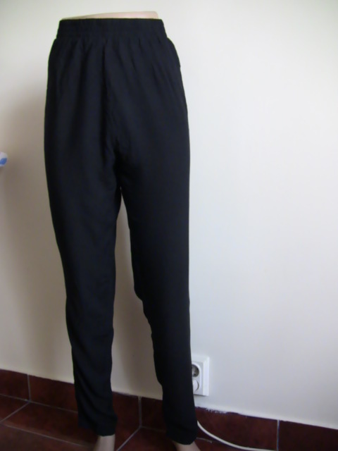 O pereche de pantaloni varatici mult mai frumosi in realitate pe fond negru intens semnati "H&M" realizati din 100% vscoza fina, conici, cu talia elastica si cu doua buzunare generoase pe laterale functionale. Usori si versatili..